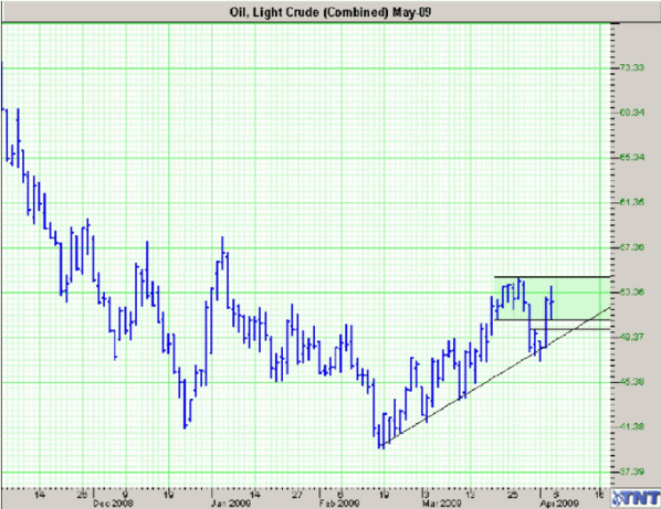 Stock strength sets up a solid bull run through week's end, as I anticipate a run through 900 on the S&P by the end of April. Bonds remain choppy and are a premium collectors dream of late, offering a high return for what remains a high risk. Continue to fade moves by legging into short strangles. The ECB went under forecasts for a half basis point cut and only cut a quarter, making many analysts question whether they are playing passive to the U.S. aggressiveness. After all if the U.S. funds the world's bailout then why chip in? I am not sure that is the reality of the situation, and I think soon we will see the U.K. and others follow the U.S. with treasury buybacks and a currency dilution of their own. The euro is at a critical juncture as the 1.3740 high will determine the trend in the euro for months to come. A thorough break, say a close above 1.3820, would indicate a long term congestion pattern in the dollar and euro and a move to 144 in the euro. A failure here would mean an aggressive return to fresh highs in the dollar a fast path to 120 in the euro. The next week or two is absolutely critical in determining the true direction of the dollar. The yen continues to fall and I expect another 5% downside potential in the near term. The peso found support where there was no historical relevance. I expect a fast decline in the peso starting this week. Short with stops above 78.