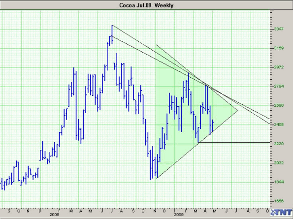 Coffee caught a significant bounce mid-week, reportedly due to a short covering rally coming from a recommended buy from a major house. Continue to buy the dips as this market remains the bull play for 2009. Sugar broke through resistance and is getting buying from India as short supplies pressure local demand. Australia announced lower than anticipated sugar supplies due to unfavorable weather. The market's recent technical breakout requires some follow through early this week, but assuming it stays above 14.00 there is significant upside potential. OJ is getting a boost from recent supply reports, drought and a potential global supply decline. Buy the dips. Cotton continues to go 2 steps forward and 1 step back and has much more upside than many would expect. I remain a call buyer. Cocoa is still a short, but preferably with puts holding a bunch of time on them as I see value there. Lumber remains a buy.